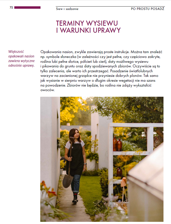 - tabelę siewu z podpowiedziami terminów i najlepszych odmian,